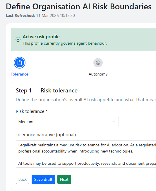AiSensa enables organisations to establish governance guardrails, risk tolerance and policy boundaries that shape how AI systems behave.